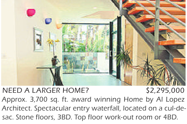 NEED A LARGER HOME? $2,295,000 Approx. 3,700 sq. ft. award winning Home by Al Lopez