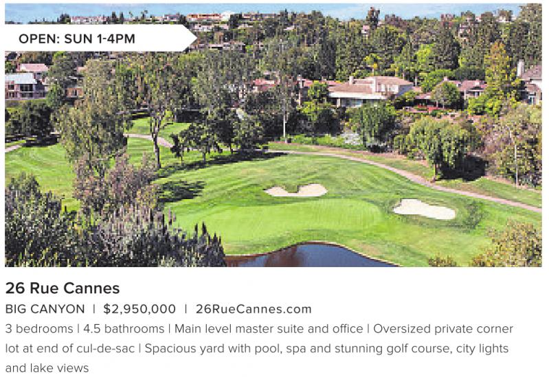 OPEN: SUN 1-4PM 26 Rue Cannes BIG CANYON | $2,950,000 | 26RueCannes.com 3 bedrooms | 4.5 bathrooms | Main level master suite and office | Oversized private corner lot at end of cul-de-sac | Spacious yard with pool, spa and stunning golf course, city lights and lake views See also