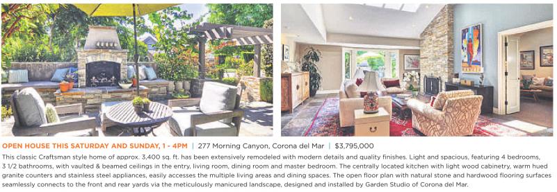 OPEN HOUSE THIS SATURDAY AND SUNDAY, 1 - 4PM | 277 Morning Canyon, Corona del Mar | $3,795,000