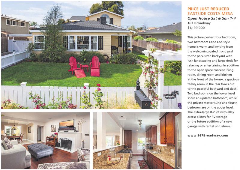 PRICE JUST REDUCED EASTSIDE COSTA MESA Open House Sat & Sun 1-4 167 Broadway $1,199,000