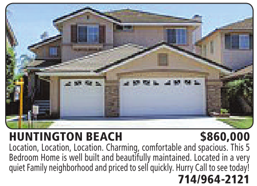 HUNTINGTON BEACH $860,000 Location, Location, Location. Charming, comfortable and spacious. This 5Bedroom Home is well built and beautifully maintained. Located inavery quietFamilyneighborhoodand pricedtosellquickly.Hurry Call to seetoday! 714/964-2121