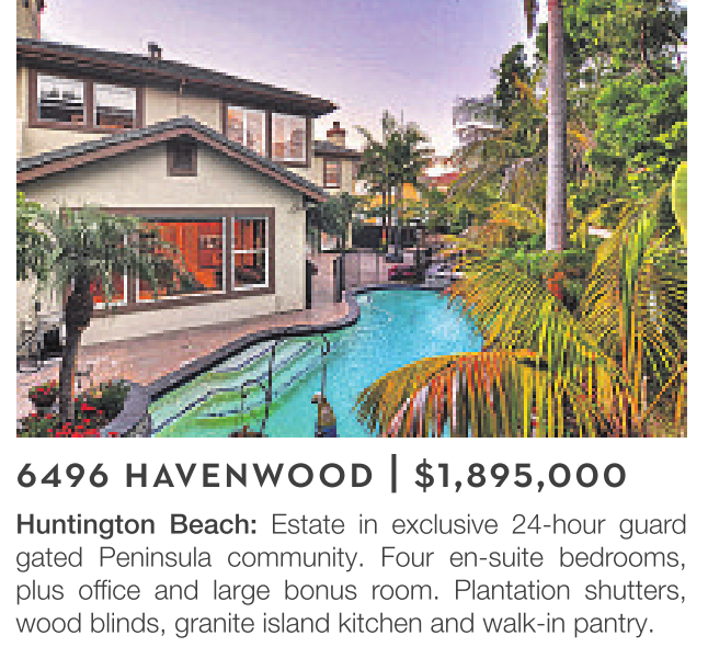 Huntington Beach: Estate in exclusive 24-hour guard gated Peninsula community. Four en-suite bedrooms, plus office and large bonus room. Plantation shutters, wood blinds, granite island kitchen and walk-in pantry.