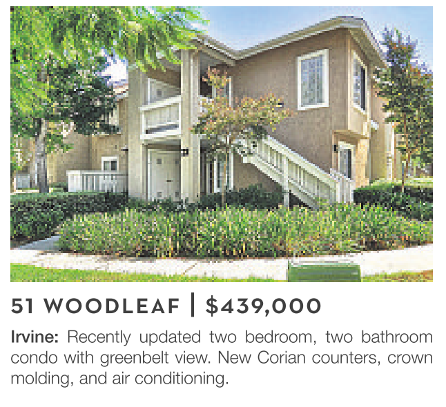 Irvine: Recently updated two bedroom, two bathroom condo with greenbelt view. New Corian counters, crown molding, and air conditioning.
