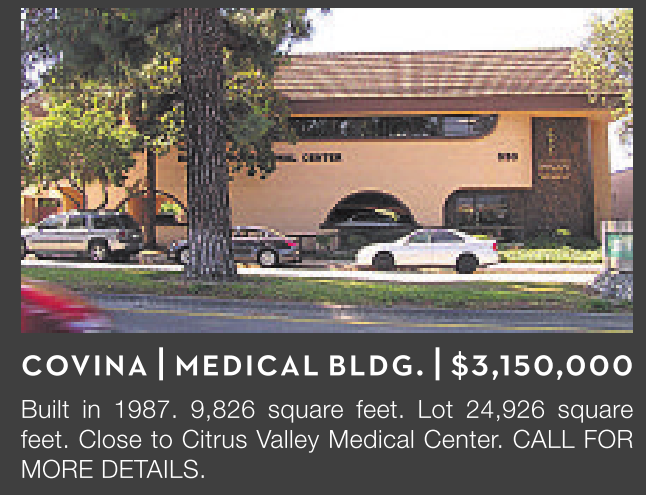 Built in 1987. 9,826 square feet. Lot 24,926 square feet. Close to Citrus Valley Medical Center. CALL FOR MORE DETAILS.