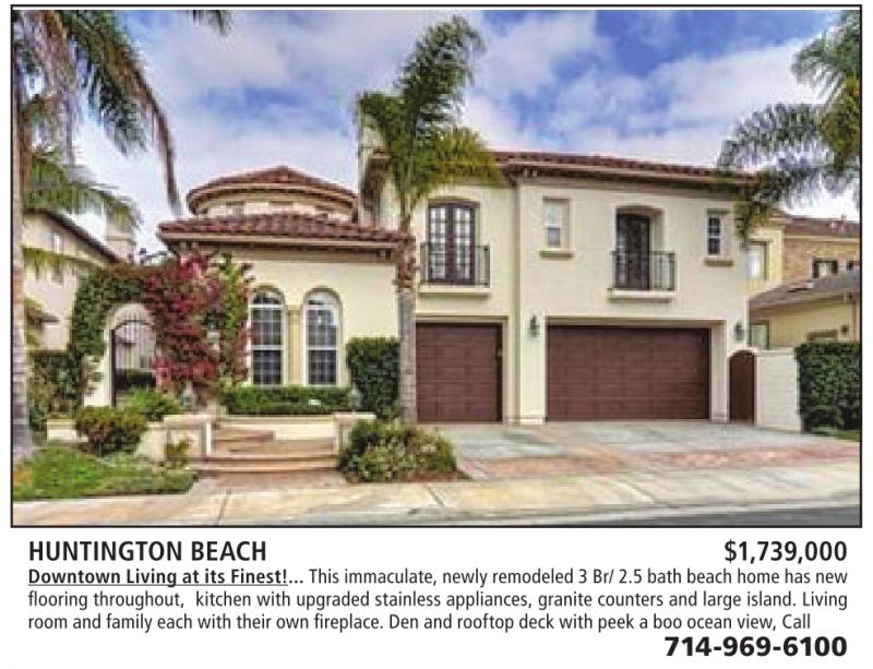 HUNTINGTON BEACH $1,739,000 Downtown Living at its Finest!... This immaculate,newly remodeled3Br/ 2.5bathbeachhome hasnew flooring throughout, kitchen with upgraded stainless appliances, granite counters and large island. Living room andfamilyeach with theirown fireplace.Den androoftop deckwithpeekaboo ocean view,Call 714-969-6100