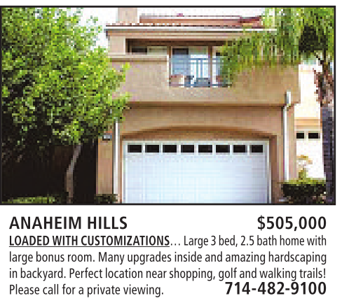 ANAHEIM HILLS $505,000 LOADED WITH CUSTOMIZATIONS…Large 3bed,2.5 bath homewith