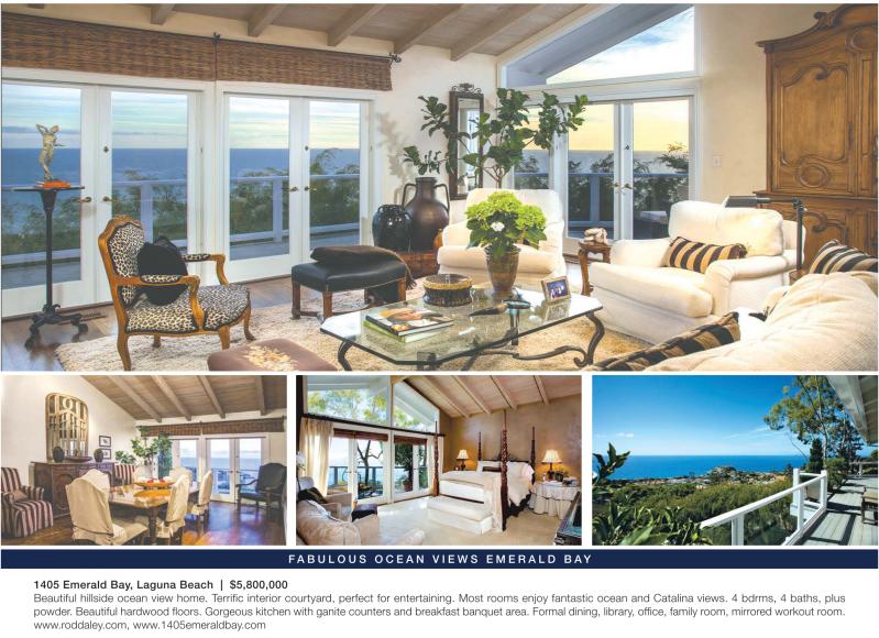 1405 Emerald Bay, Laguna Beach | $5,800,000 Beautiful hillside ocean view home. Terrific interior courtyard, perfect for entertaining. Most rooms enjoy fantastic ocean and Catalina views. 4 bdrms, 4 baths, plus powder. Beautiful hardwood floors. Gorgeous kitchen with ganite counters and breakfast banquet area. Formal dining, library, office, family room, mirrored workout room. www.roddaley.com, www.1405emeraldbay.com