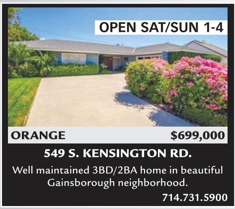 ORANGE $699,000 549 S. KENSINGTON RD.