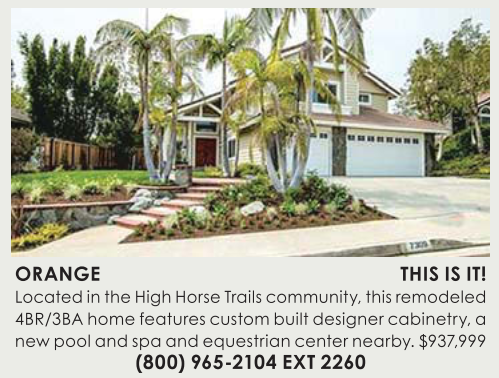 Located in the High Horse Trails community, this remodeled 4BR/3BA home features custom built designer cabinetry, a new pool and spa and equestrian center nearby. $937,999 (800) 965-2104 EXT 2260