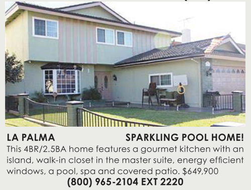 This 4BR/2.5BA home features a gourmet kitchen with an island, walk-in closet in the master suite, energy effi cient windows, a pool, spa and covered patio. $649,900 (800) 965-2104 EXT 2220