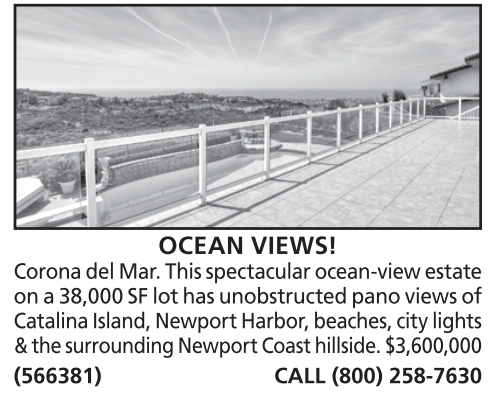 on a 38,000 SF lot has unobstructed pano views of Catalina Island, Newport Harbor, beaches, city lights & the surrounding Newport Coast hillside. $3,600,000