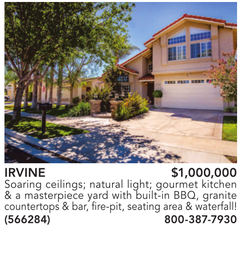 IRVINE $1,000,000 Soaring ceilings; natural light; gourmet kitchen & a masterpiece yard with built-in BBQ, granite countertops & bar, fire-pit, seating area & waterfall! (566284) 800-387-7930