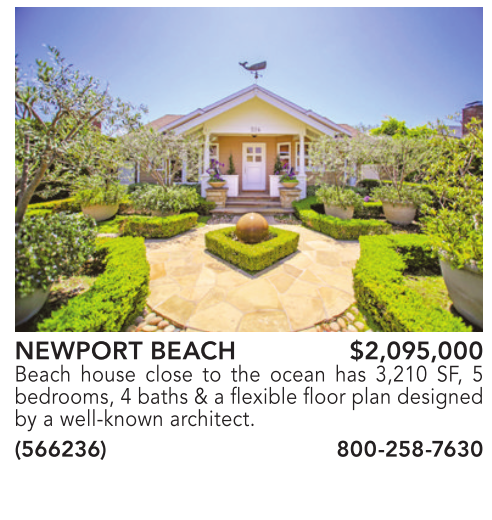 NEWPORT BEACH $2,095,000 Beach house close to the ocean has 3,210 SF, 5 bedrooms, 4 baths & a flexible floor plan designed by a well-known architect.