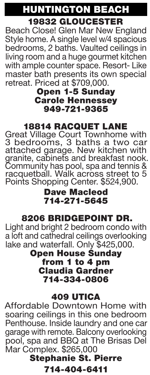 Open 1-5 Sunday Carole Hennessey 949-721-9365