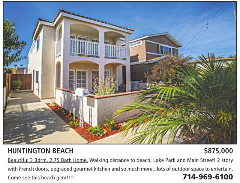 HUNTINGTON BEACH $875,000 Beautiful 3 Bdrm, 2.75 Bath Home. Walking distance to beach, Lake Park and Main Street! 2 story with French doors,upgraded gourmet kitchen andsomuchmore...lots of outdoorspace to entertain. Come see this beach gem!!!! 714-969-6100