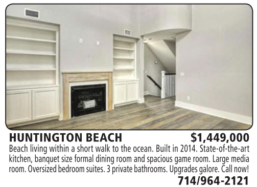 HUNTINGTON BEACH $1,449,000 Beach living within a short walk to the ocean. Built in 2014. State-of-the-art kitchen, banquet size formal dining room and spacious game room. Large media room. Oversized bedroom suites. 3 private bathrooms. Upgrades galore. Call now!