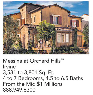 Messina at Orchard Hills ™ Irvine 3,531 to 3,801 Sq. Ft. 4 to 7 Bedrooms, 4.5 to 6.5 Baths From the Mid $1 Millions 888.949.6300