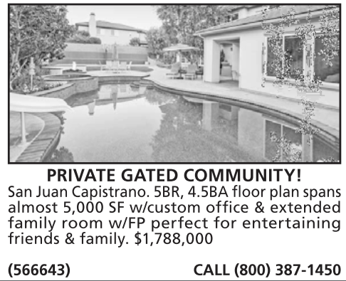 San Juan Capistrano. 5BR, 4.5BA floor plan spans almost 5,000 SF w/custom office & extended family room w/FP perfect for entertaining friends & family. $1,788,000