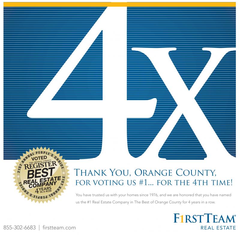 You have trusted us with your homes since 1976, and we are honored that you have named us the #1 Real Estate Company in The Best of Orange County for 4 years in a row.