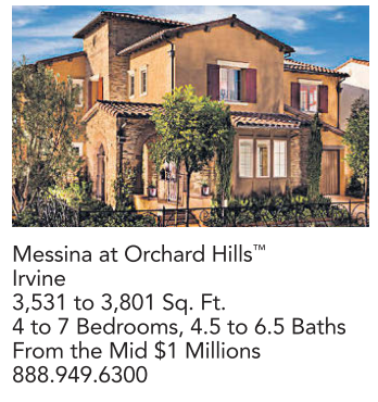Messina at Orchard Hills ™ Irvine 3,531 to 3,801 Sq. Ft. 4 to 7 Bedrooms, 4.5 to 6.5 Baths From the Mid $1 Millions 888.949.6300