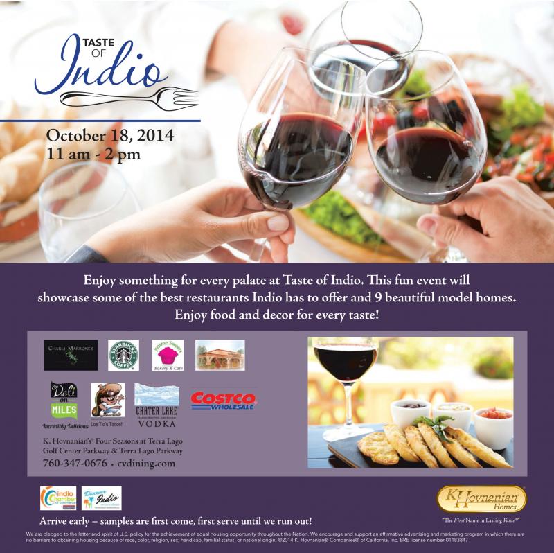 Enjoy something for every palate at Taste of Indio. This fun event will showcase some of the best restaurants Indio has to offer and 9 beautiful model homes.