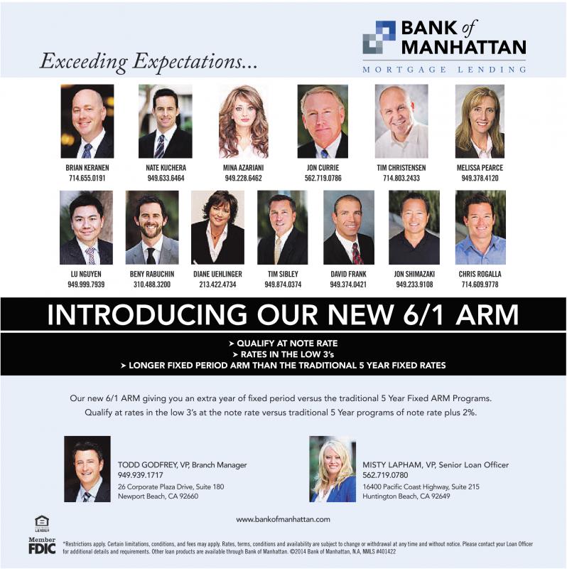 *Restrictions apply.Certain limitations, conditions, and fees may apply.Rates, terms, conditions and availability are subject to change or withdrawal at any time and without notice. Please contact your Loan Officer for additional details and requirements. Other loan products are available through Bank of Manhattan. ©2014 Bank of Manhattan, N.A, NMLS #401422