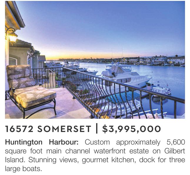 Huntington Harbour: Custom approximately 5,600 square foot main channel waterfront estate on Gilbert Island. Stunning views, gourmet kitchen, dock for three large boats.