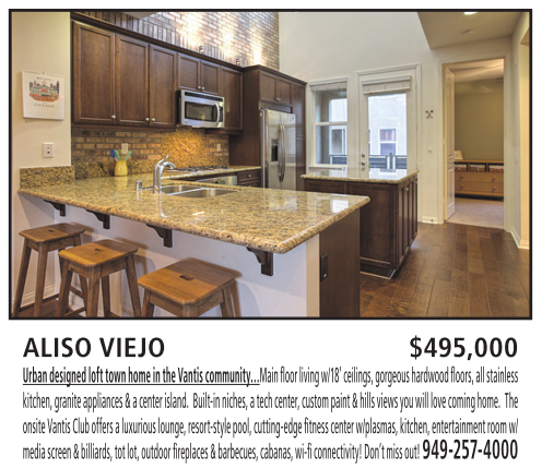 ALISO VIEJO $495,000 Urban designed loft townhome in theVantis community…Main floorliving w/18’ceilings,gorgeous hardwood floors, allstainless