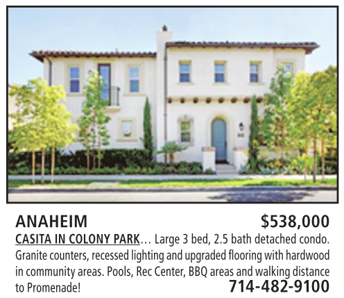 ANAHEIM $538,000 CASITA INCOLONY PARK… Large 3bed, 2.5 bath detached condo.