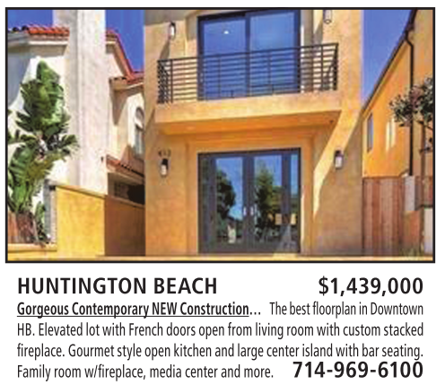 HB.Elevated lotwithFrench doors openfrom living room with customstacked fireplace.Gourmet styleopenkitchen andlarge centerislandwithbar seating. Family room w/fireplace,media centerand more. 714-969-6100