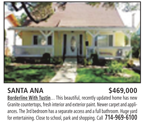 Granite countertops, freshinterior andexterior paint.Newer carpet andappliances. The3rd bedroom hasaseparate access andafullbathroom.Hugeyard forentertaining. Close to school, parkand shopping. Call 714-969-6100
