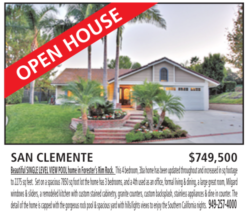 SAN CLEMENTE $749,500 Beautiful SINGLE LEVELVIEWPOOLhome in Forester’s RimRock. This 4bedroom, 3ba homehas been updatedthroughout and increasedinsqfootage