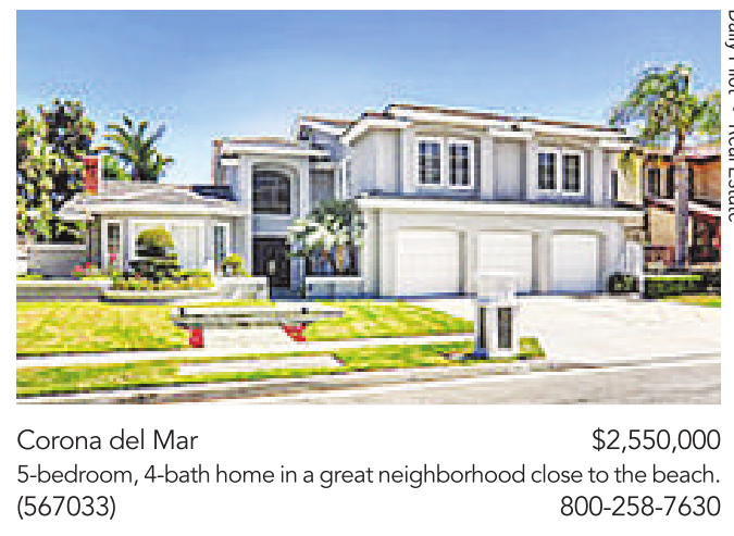 Corona del Mar $2,550,000 5-bedroom, 4-bath home in agreat neighborhood close to the beach. (567033) 800-258-7630