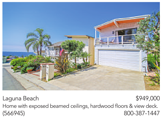 Laguna Beach $949,000 Home with exposed beamed ceilings, hardwood floors &view deck. (566945) 800-387-1447