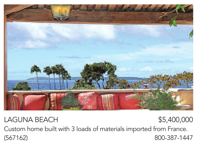 LAGUNA BEACH $5,400,000 Custom home built with 3loads of materials imported from France. (567162) 800-387-1447
