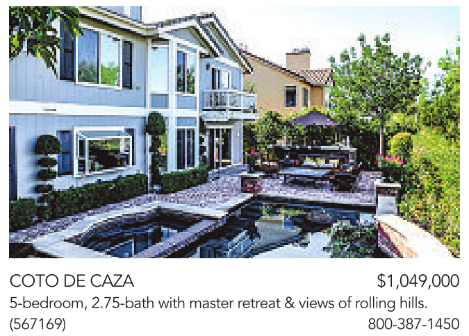 COTO DE CAZA $1,049,000 5-bedroom, 2.75-bath with master retreat &views of rolling hills. (567169) 800-387-1450