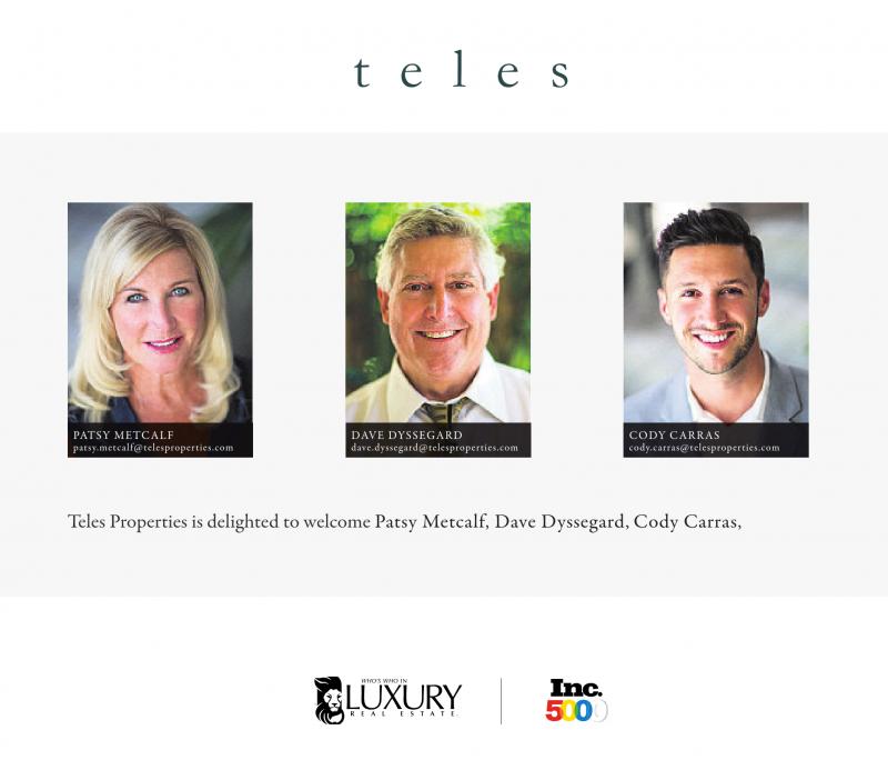 Teles Properties is delighted to welcome Patsy Metcalf, Dave Dyssegard, Cody Carras,