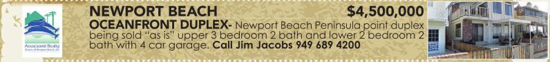 Newport Beach Peninsula point duplex being sold “as is” upper 3 bedroom 2 bath and lower 2 bedroom 2 bath with 4 car garage. Call Jim Jacobs 949 689 4200