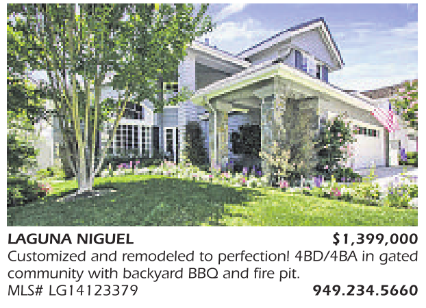 LAGUNA NIGUEL $1,399,000 Customized and remodeled to perfection! 4BD/4BA in gated community with backyard BBQ and fire pit. MLS# LG14123379 949.234.5660