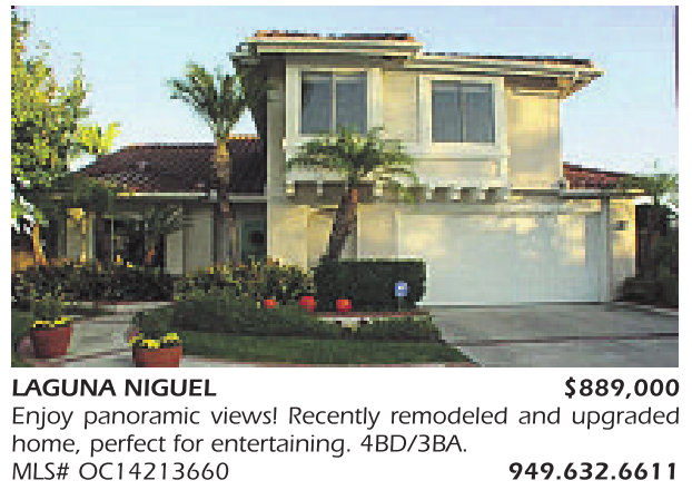 LAGUNA NIGUEL $889,000 Enjoy panoramic views! Recently remodeled and upgraded home, perfect for entertaining. 4BD/3BA. MLS# OC14213660 949.632.6611