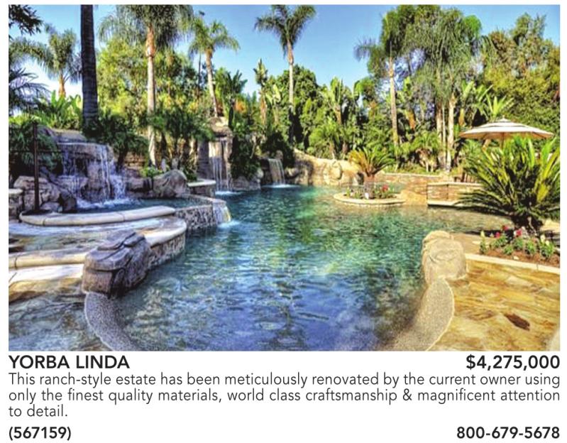 YORBA LINDA $4,275,000 This ranch-style estate has been meticulously renovated by the current owner using only the finest quality materials, world class craftsmanship & magnificent attention to detail.