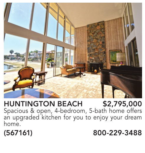 HUNTINGTON BEACH $2,795,000 Spacious & open, 4-bedroom, 5-bath home offers an upgraded kitchen for you to enjoy your dream home.