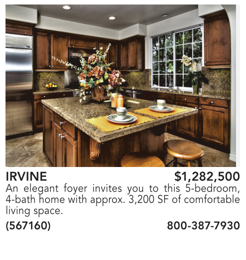 IRVINE $1,282,500 An elegant foyer invites you to this 5-bedroom, 4-bath home with approx. 3,200 SF of comfortable living space.