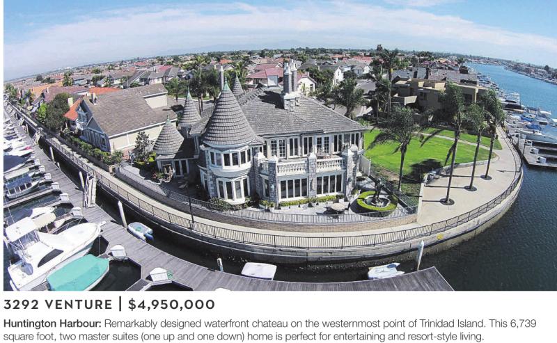 3292 VENTURE | $4,950,000 Huntington Harbour: Remarkably designed waterfront chateau on the westernmost point of Trinidad Island. This 6,739 square foot, two master suites (one up and one down) home is perfect for entertaining and resort-style living.