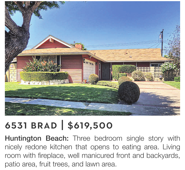 Huntington Beach: Three bedroom single story with nicely redone kitchen that opens to eating area. Living room with fireplace, well manicured front and backyards, patio area, fruit trees, and lawn area.
