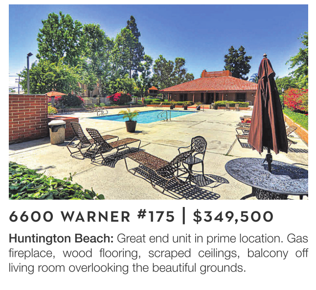Huntington Beach: Great end unit in prime location. Gas fireplace, wood flooring, scraped ceilings, balcony off living room overlooking the beautiful grounds.