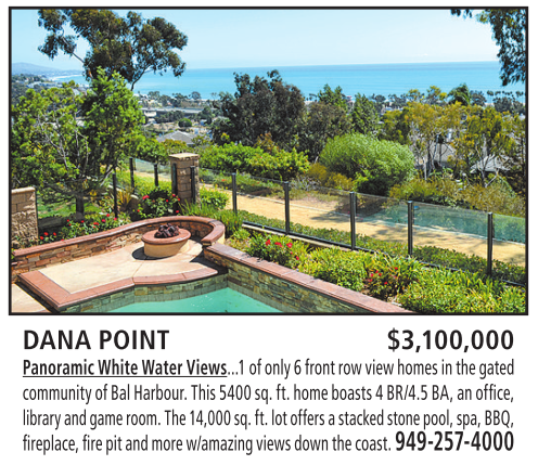 communityofBal Harbour.This 5400 sq. ft.home boasts 4BR/4.5BA, an office, libraryand game room.The 14,000 sq. ft.lot offersastacked stone pool, spa, BBQ, fireplace,fire pit andmore w/amazingviews down thecoast. 949-257-4000