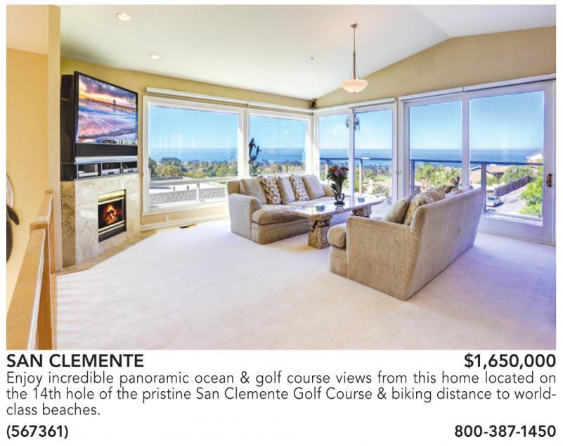 SAN CLEMENTE $1,650,000 Enjoy incredible panoramic ocean & golf course views from this home located on the 14th hole of the pristine San Clemente Golf Course & biking distance to worldclass beaches.