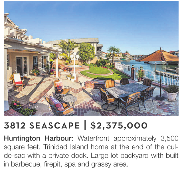 Huntington Harbour: Waterfront approximately 3,500 square feet. Trinidad Island home at the end of the culde-sac with a private dock. Large lot backyard with built in barbecue, firepit, spa and grassy area.