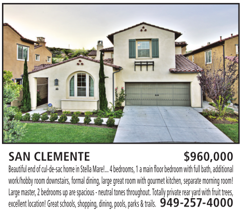 SAN CLEMENTE $960,000 Beautifulend of cul-de-sachome in Stella Mare!... 4bedrooms,1amain floorbedroomwithfullbath, additional